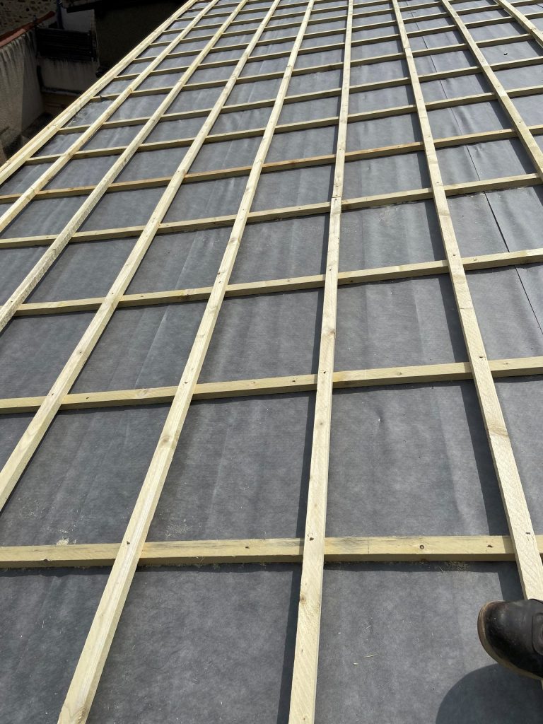 - Nous retirons soigneusement les matériaux de couverture existants pour accéder à la charpente et préparer la surface pour l’installation de l’isolation.